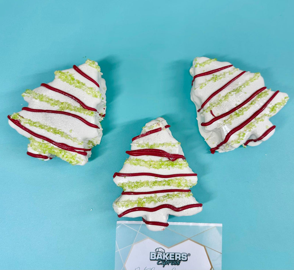 Transform your holiday baking with these charming mini Christmas tree cakes. Crafted using our signature 50Express® White Cake Mix, each delicate cake is generously filled with smooth buttercream and enrobed in luxurious white chocolate. The finishing touches—vibrant colored chocolate drizzle and sparkling 50Express® Sugar Crystals—create an elegant presentation that rivals professional bakery confections. Perfect for festive gatherings, gift boxes, or individual indulgences, these miniature treats deliver sophisticated flavor and visual appeal in every bite.