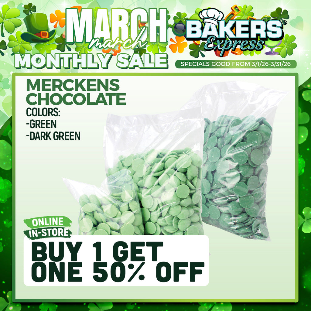 *When using the Merckens dark, milk, or colored chocolates in silicone molds, you may notice a white film, or white spots in the top layer, DO NOT PANIC. This does not mean the chocolate is old, it is simply a matter of the silicone mold being a different temperature than the chocolate and is an easy fix. To prevent this from happening pop your silicone in the microwave or heat up with a hair dryer for a quick 8-12 seconds before pouring in your chocolate.